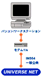 パソコンとモデムさえあれば、一般公衆回線を経由して接続するもっとも手近な方法です。