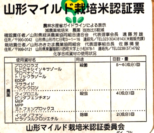 例えばこの表示で除草剤の「インダノファン」、「ピラゾスルフロンエチル」という2種類の源体(成分)を使用していますが、ウチらで使っている「メフェナセット」、「カフェンストロール」や「ハシロホップブチル」等の成分の除草剤を使った場合この「シール」は使えません。農薬会社は、いっぱいあるけど使う農薬の選択肢(自由度)が極めて少なくなる。中には1ー2社しか作ってない農薬もあるので、ここに載ってている剤の農薬会社ウハウハやん。