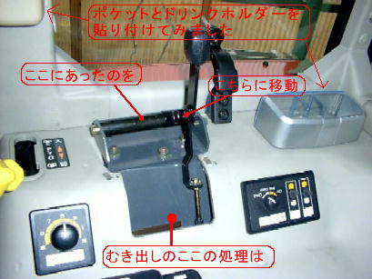 まず、個人的に使いにくい操作系の「レバー」やら「つまみ」やらのとっかえ。特に油圧昇降「ポジションつまみ」は深耕自動を使うことを前提に(するなよ)考えてあるので私みたいに「手動で」ポジションを制御する人間には「つまみ」ではなくて「レバー」でないと都合が悪い。(オプションに「ポジションレバー延長キット」なるものがちゃんと存在する)PTOクラッチのレバーもイマイチ使いづらいので交換。