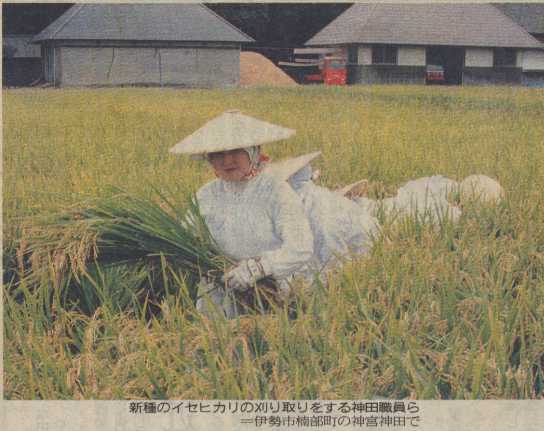 平成8年9月22日の中日新聞には、カラー写真入りでお伊勢さんの神饌田で「新品種イセヒカリ」の収穫が始まったという記事も掲載されました。