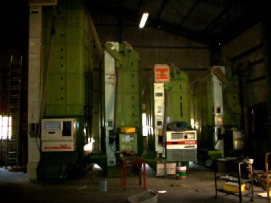 御存知の方も多いとは思いますが、こんな縦型循環式乾燥機で籾を乾燥します。大きさも様々で、最小200kgから最大20トンまで多様。普通一般農家用で普及しているのが13石から30石、面積で2反ー5反用が各メーカー主力のようです。写真の右側2台が20石(約3反)左の大きいのが60石(8反ー1町用)でほとんどウチ専用。普通の収穫時の籾水分25%前後から仕上がり水分15%まで乾かすのに晴天時でおおよそ半日から20時間。普通0.5%/時間とされています。空気中の湿度で仕上がり時間は大きく変わり、雨など降ろうものなら水分計が壊れとるんじゃないかっちゅう程乾かん。 |