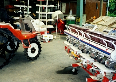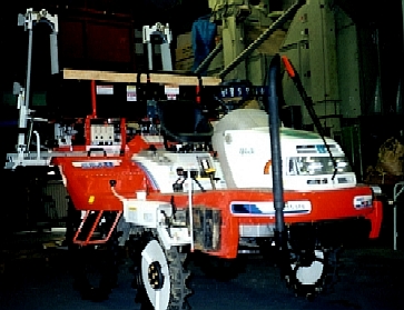 | 田植仕様に対しての変更点は、空気入りナロートレッドのリアタイヤ、作物に排気のかからないようにアップマフラー。防除モードでは後の作業機の昇降範囲が狭く(小さく)なり最高速も低くなる。 |